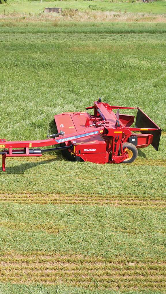 Whether you’re mowing alfalfa, clover, orchard grass, timothy, bermuda grass, bahia, grass, fescue, cereal rye, forage wheat or oats, the Discbine® 209 and 210 cut quickly and produce nutritious, high-value feed using your choice of conditioning systems. Both mowers give you the choice of gentle, effective conditioning with rubber chevron-intermeshing or LeaningEdge™ flail tines for fast grass hay drying. The Discbine® 210 offers the added choice of steel chevron-intermeshing rolls. No matter the system, each offers fast, infinite adjustments to conditioning intensity to match crop and weather conditions.