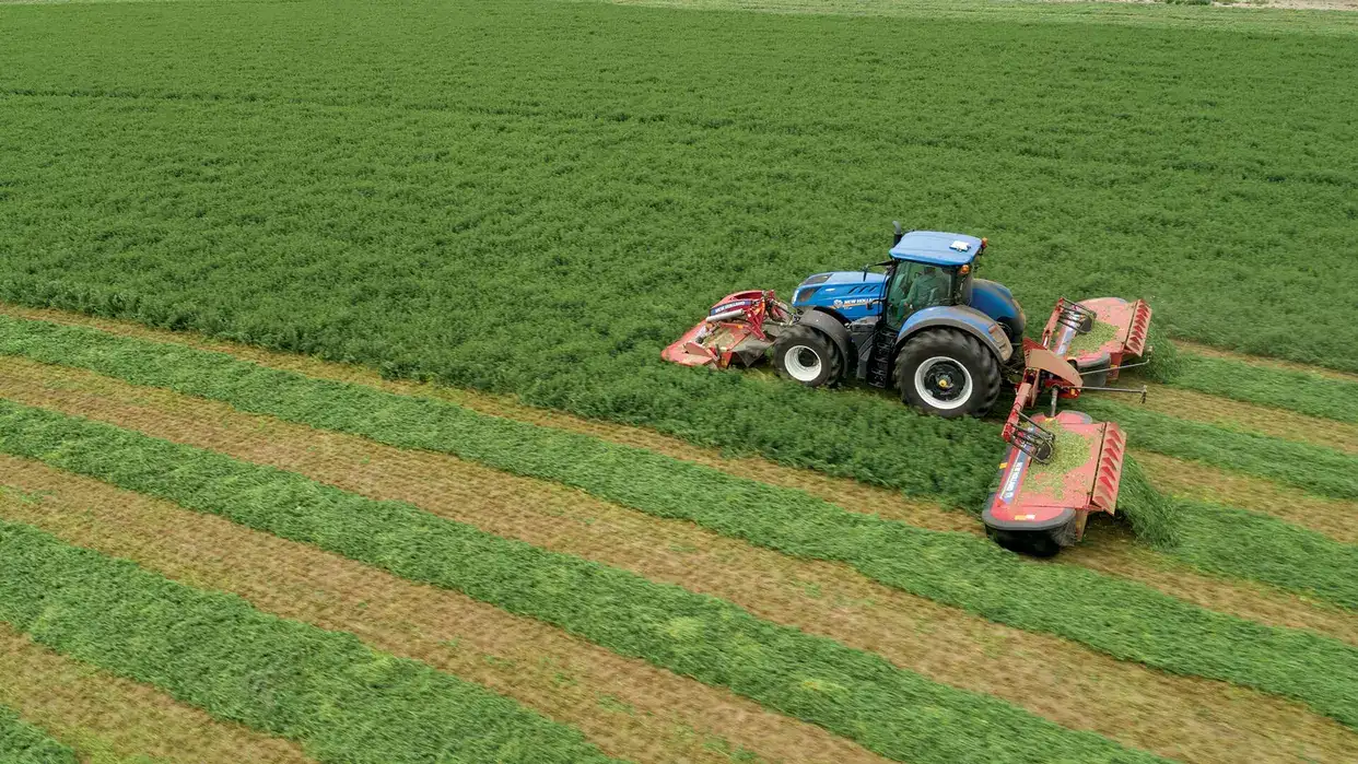 Today’s commercial operations and custom harvesters know preserving forage quality is like money in the bank. It’s a process that begins when the first crop falls and only ends when the bales are stacked and the bunk is packed. New Holland can help you reach your goal with high-capacity MegaCutter™ solutions.