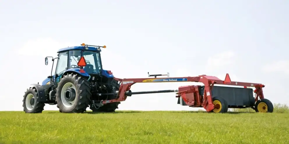 New Holland's proven MowMax™ cutterbar sets the standard for the industry. With its true modular design, each disc module is an individually sealed gear case with a dedicated oil reservoir. Even when cutting on slopes, there's never a problem with oil starvation to the upper side. Each case is connected with independent, hardened alloy drive shafts, instead of a single-piece drive shaft that can twist. The cutterbar is backed by Three-Year MowMax™ Protection that includes the one year standard machine warranty plus two more years of coverage on the disc cutterbar starting with the input drive shaft.